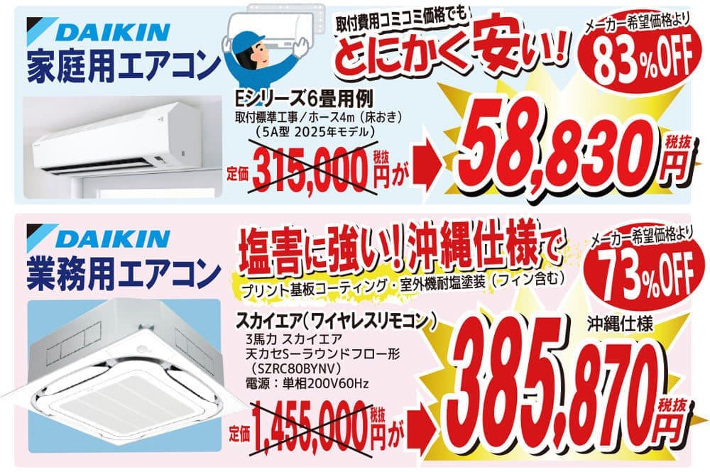 現在弊社ではダイキン製エアコンの激安キャンペーン中です!