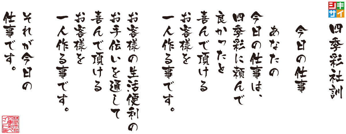 この社訓からも、四季彩グループがいかに「お客様ファースト」であるということがご理解いただけると思います。