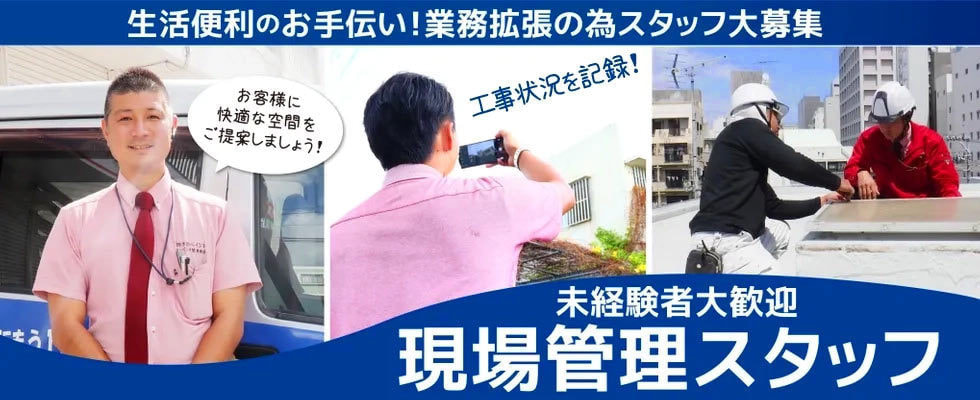 初めは先輩スタッフと一緒に現場を回りながら、お仕事の内容を覚えて頂きますので、未経験の方も安心です。