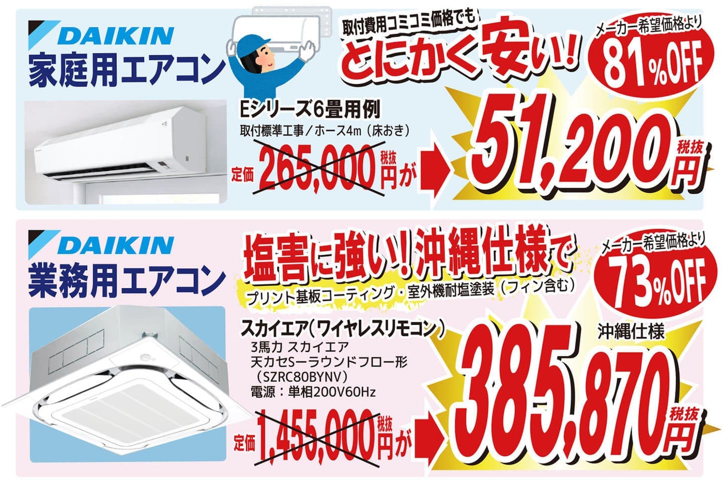 現在弊社ではダイキン製エアコンの激安キャンペーン中です!