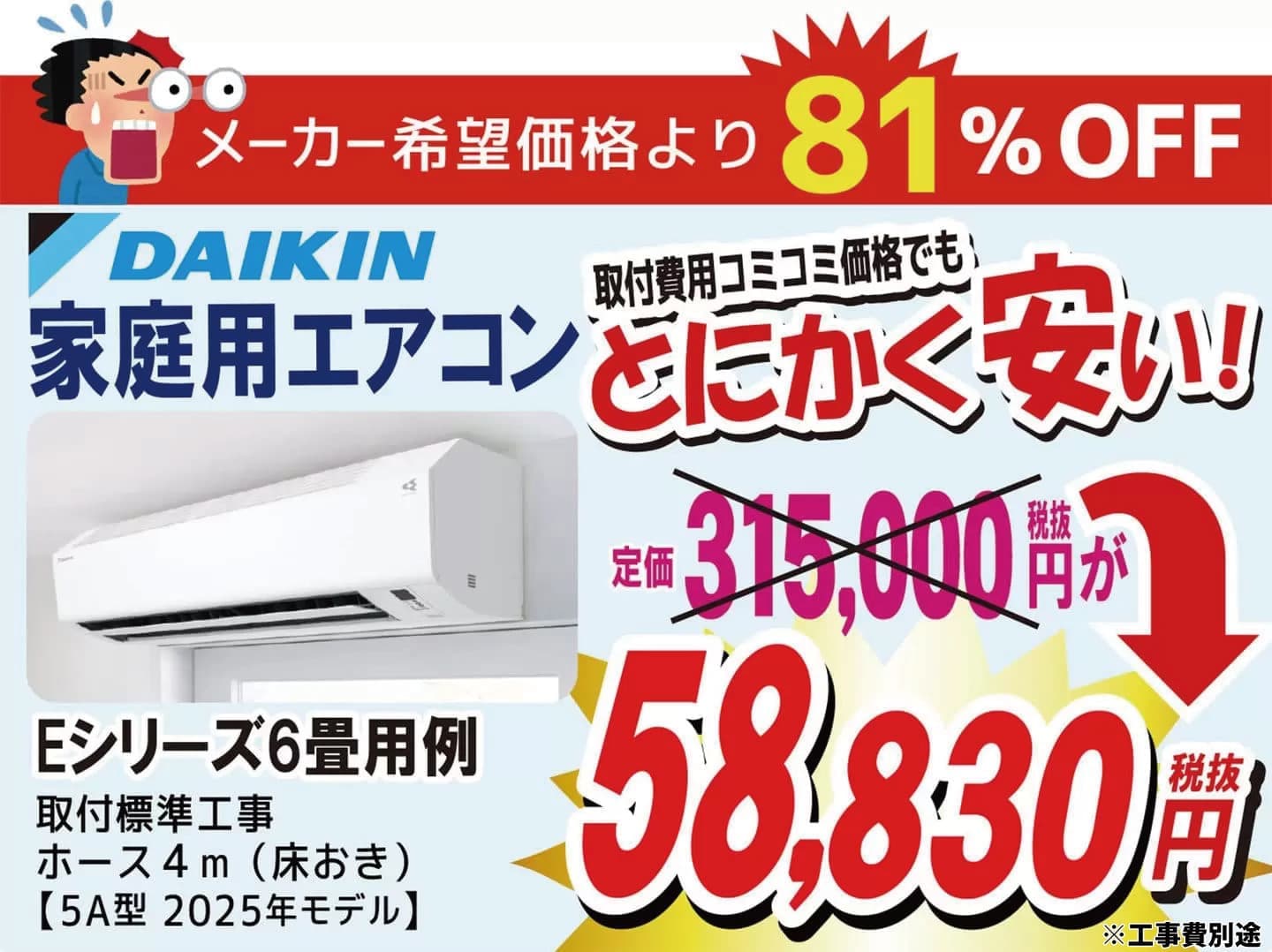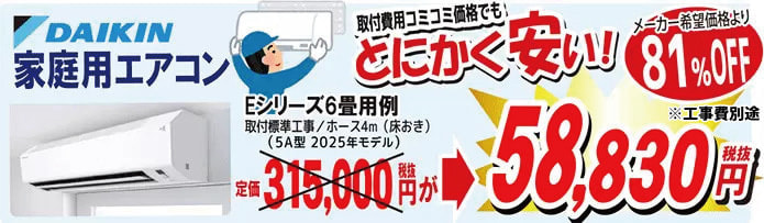 ダイキン家庭用6畳用エアコン(Eシリーズ)が81%オフ!