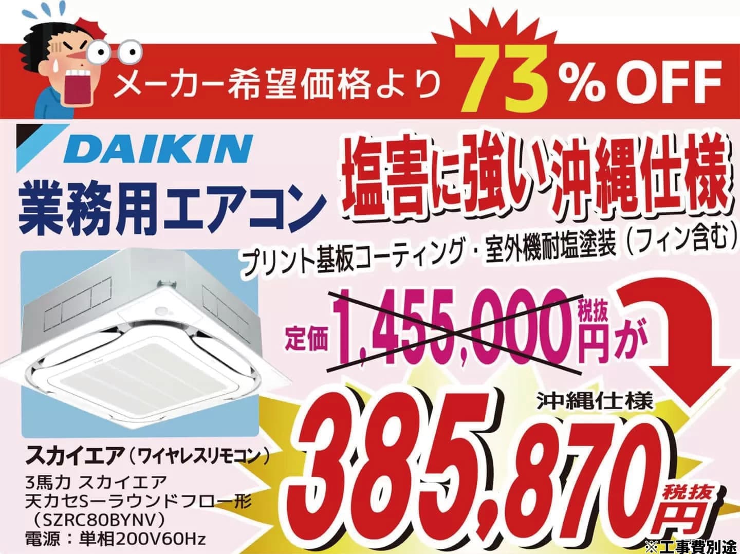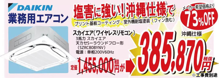 ダイキン業務用エアコン(スカイエア)が73%オフ!